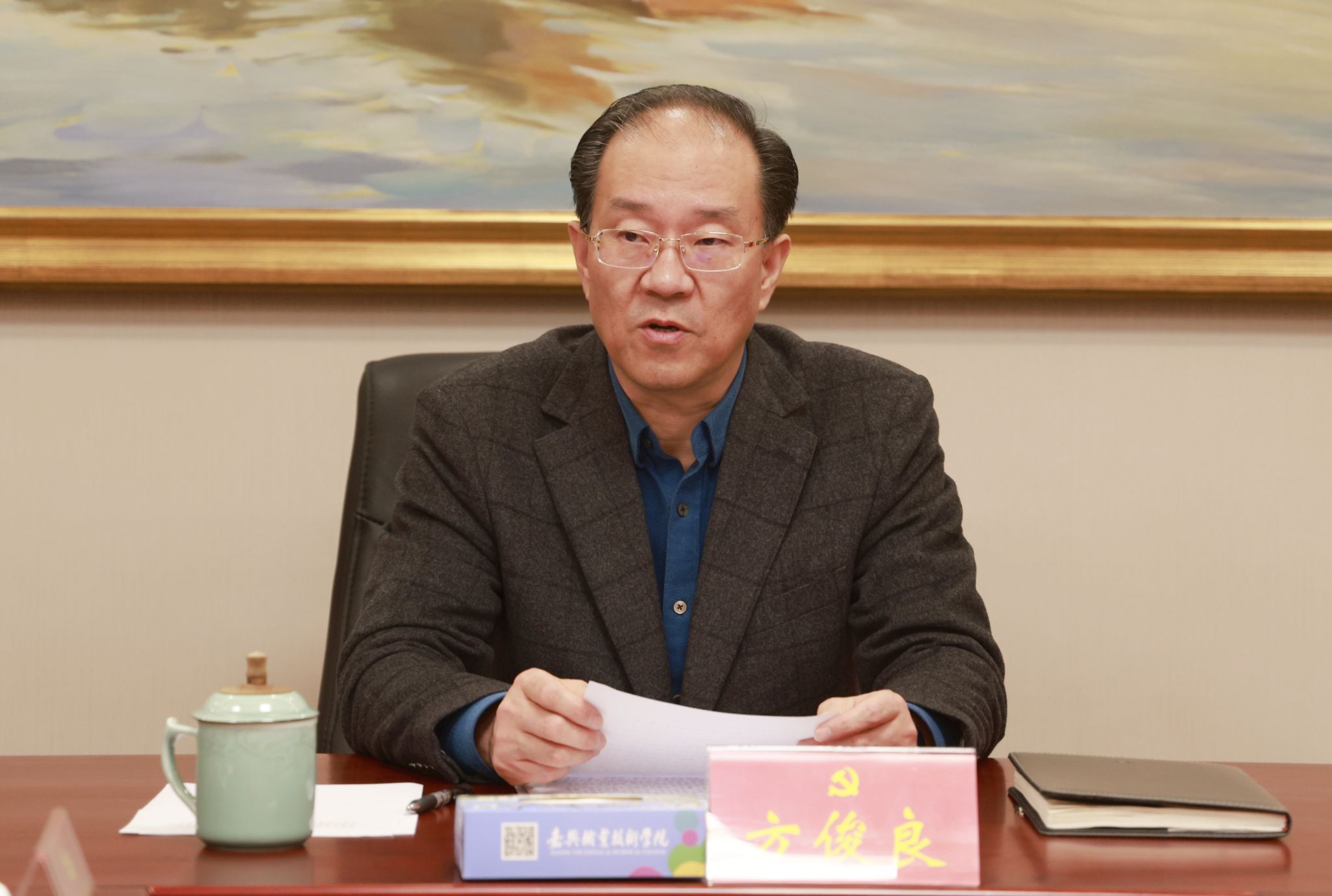 1月8日,嘉職院黨委理論學習中心組舉行學習貫徹“習近平新時代中國特色社會主義思想主題教育專題民主生活會上的重要講話精神”專題學習會。黨委書記方俊良主持并講話,黨委副書記張紅宇,黨委委員、副校長陳海忠作交流發言。