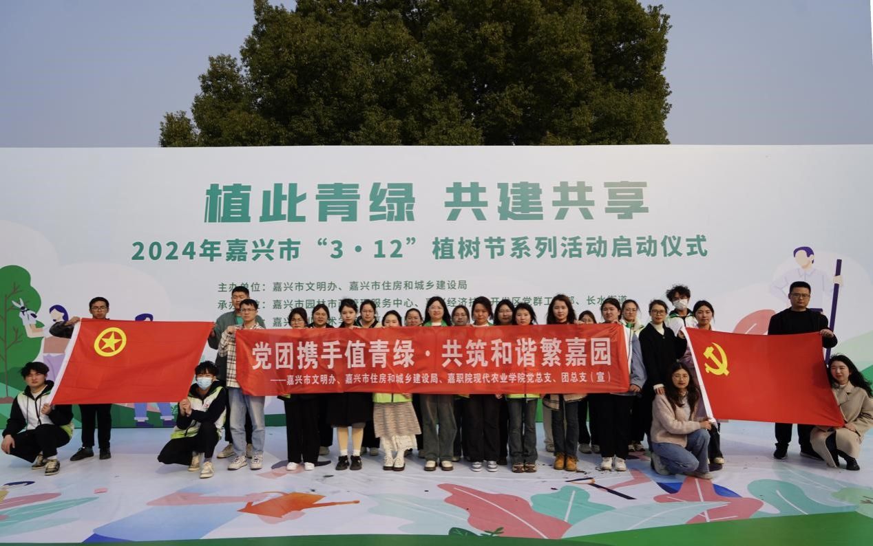 為進一步推動義務植樹活動深入持續發展,大力弘揚植綠、愛綠、護綠新風尚,3月12日下午,由嘉職院協辦的“植此青綠·共建共享”2024年嘉興市“3·12”植樹節系列活動啟動儀式在嘉興植物園舉行。活動現場,嘉職院、市園林綠化學會、市園林中心相關負責人共同為植物園科普研究合作基地揭牌。