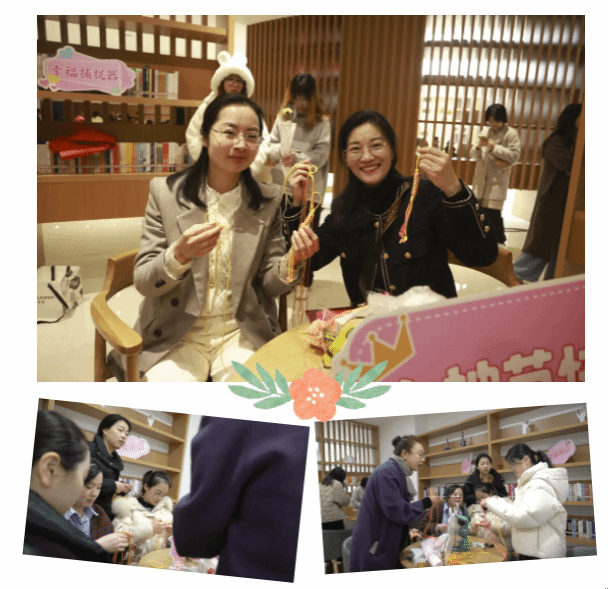 學校三八節活動不僅受到了女教職工們的追捧,還吸引了嘉興市公安局出入境管理局婦女小組的參與。在手工編織活動區域,她們一邊聆聽指導老師的講解,一邊聚精會神緊跟老師節奏,一步一步動手學習,現場氛圍十分融洽。