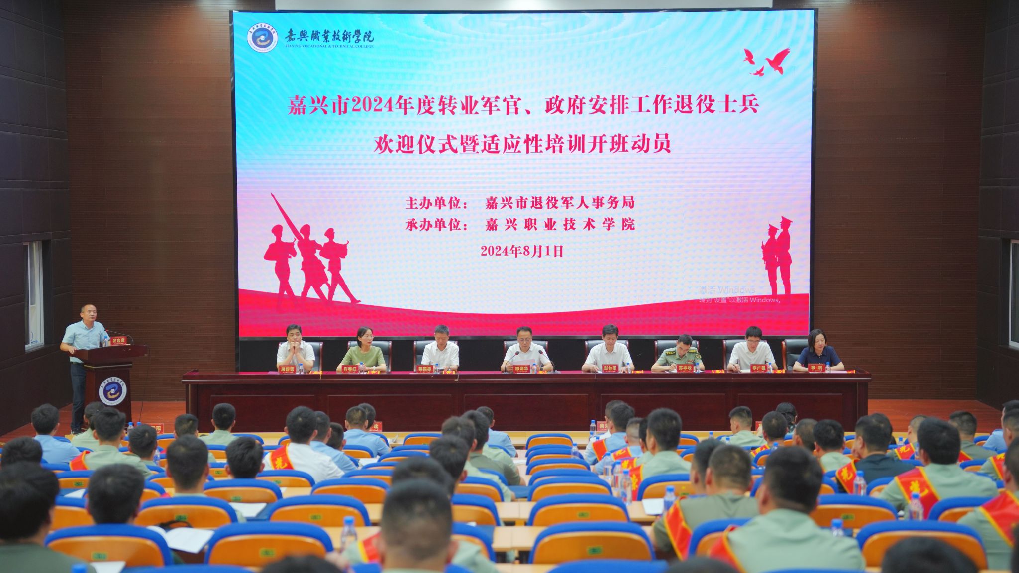 8月1日上午,在中國人民解放軍建軍97周年之際,嘉興市2024年度轉業軍官、政府安排工作退役士兵歡迎儀式暨適應性培訓開班動員在嘉職院舉行。嘉興市人民政府副市長邢海華出席并作開班動員講話。
