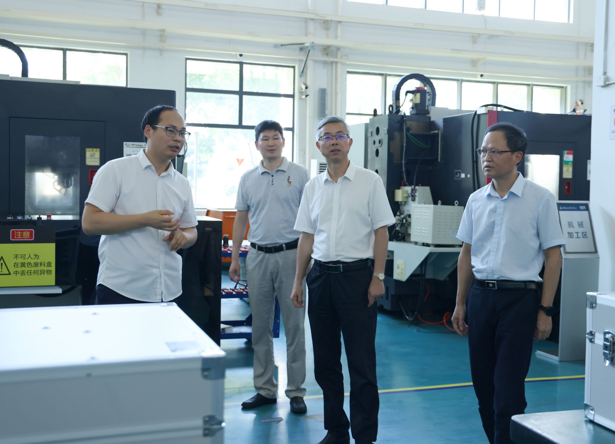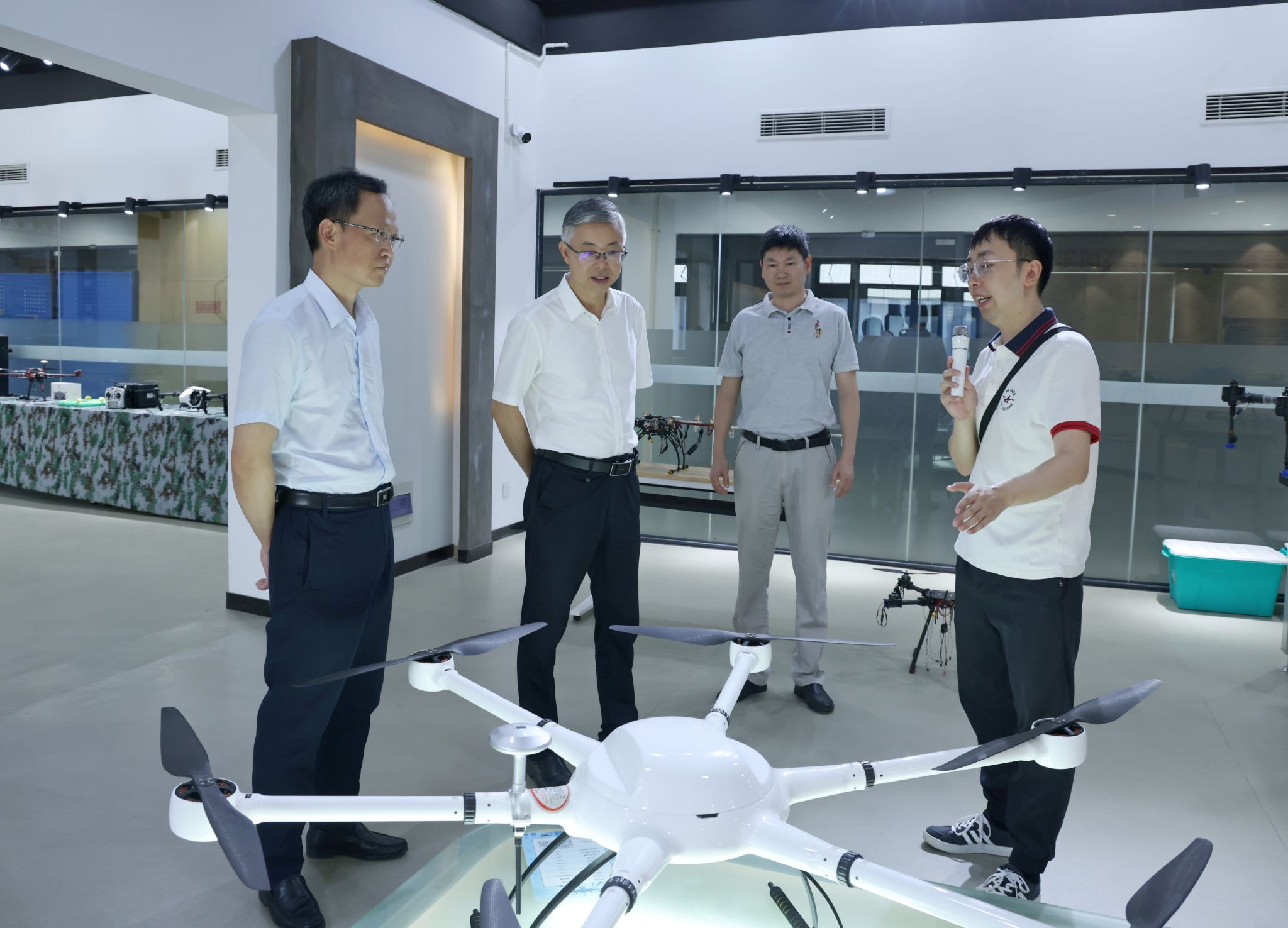 徐勇一行參觀了學校無人機協同創新中心、工業互聯網智能產線、時尚設計學院展廳。