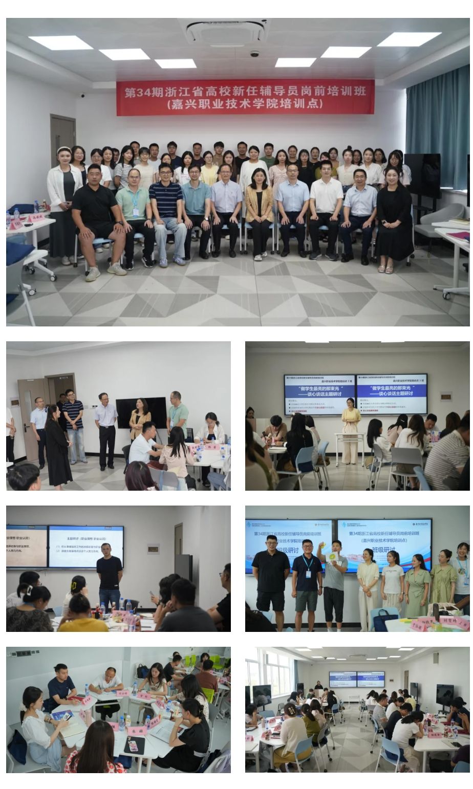 8月22日,由浙江省高等教育學(xué)會思想政治教育分會主辦,嘉興職業(yè)技術(shù)學(xué)院承辦的第34期浙江省高校新任輔導(dǎo)員崗前培訓(xùn)班圓滿落幕。來自全省19所高校的133名輔導(dǎo)員在嘉興職業(yè)技術(shù)學(xué)院培訓(xùn)點順利完成學(xué)習(xí)并結(jié)業(yè)。