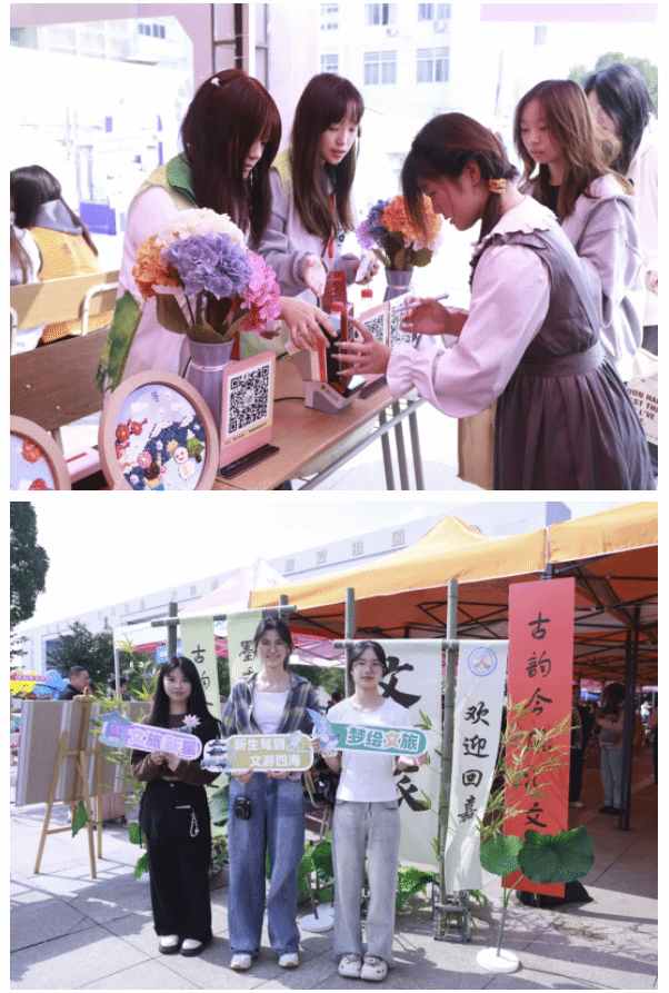 報到、登記、繳費……迎新工作忙中有序、有條不紊地進行著。現場,各二級學院結合自身優勢與特色,將校園文化、專業介紹、作品展示、學生社團等內容融入迎新展板,師生齊上陣,以最飽滿的熱情歡迎每一位新同學的到來。