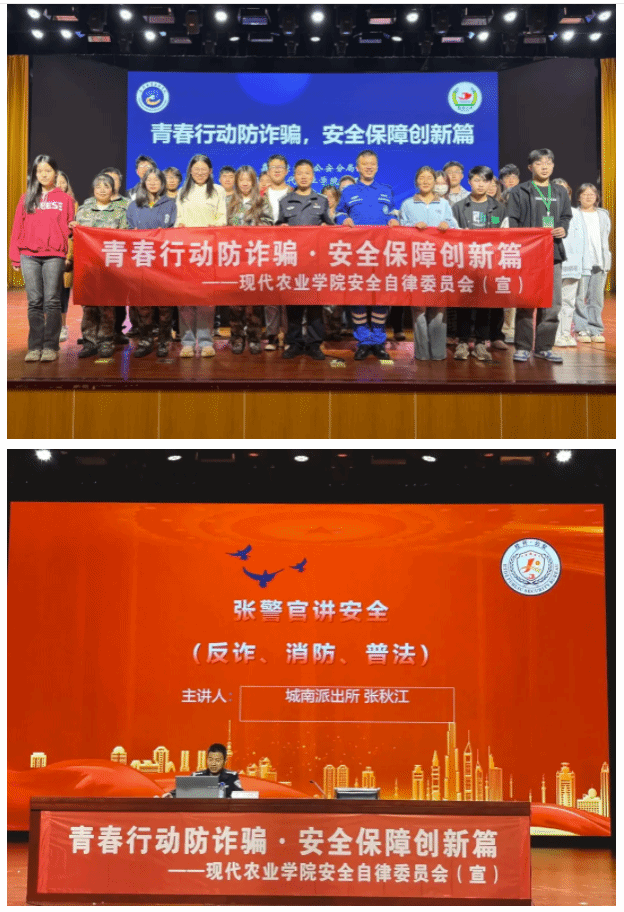 現代農業學院安全自律委員會特邀城南派出所民警為學生帶來專題教育講座。民警圍繞電信詐騙的概念、常見形式、防范對策以及補救措施四個方面,通過列舉身邊的真實案例、情景模擬、互動問答等方式,生動形象地展示了電信詐騙的危害性和反詐騙工作的重要性,極大地激發了學生們的參與熱情和思考深度。