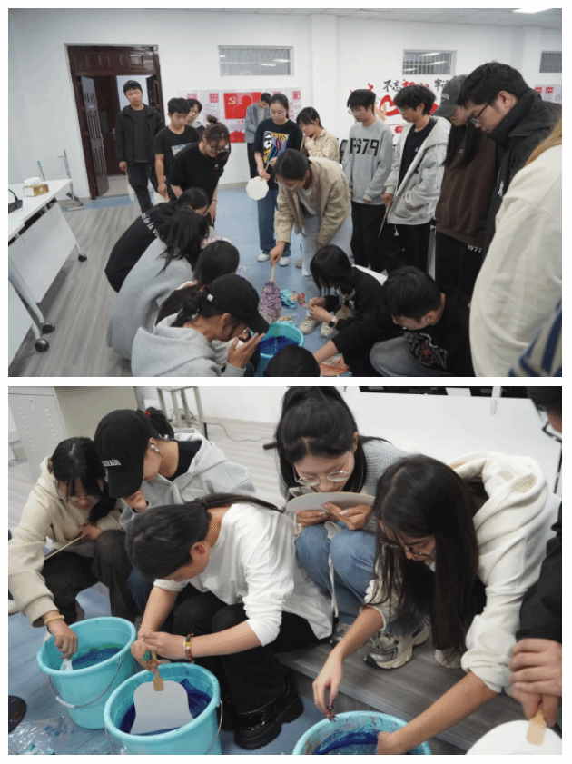 一筆一畫書寫防騙知識,一漆一墨繪制反詐畫扇。同學們將反詐知識的內容精心手寫于空白漆扇之上,隨后緩緩地將這些漆扇浸入特制的漆扇制作桶中。隨著漆液在扇面上漸漸彌漫開來,一把把色彩斑斕、紋路獨特且富含個性化反詐信息的漆扇便制作完成了。