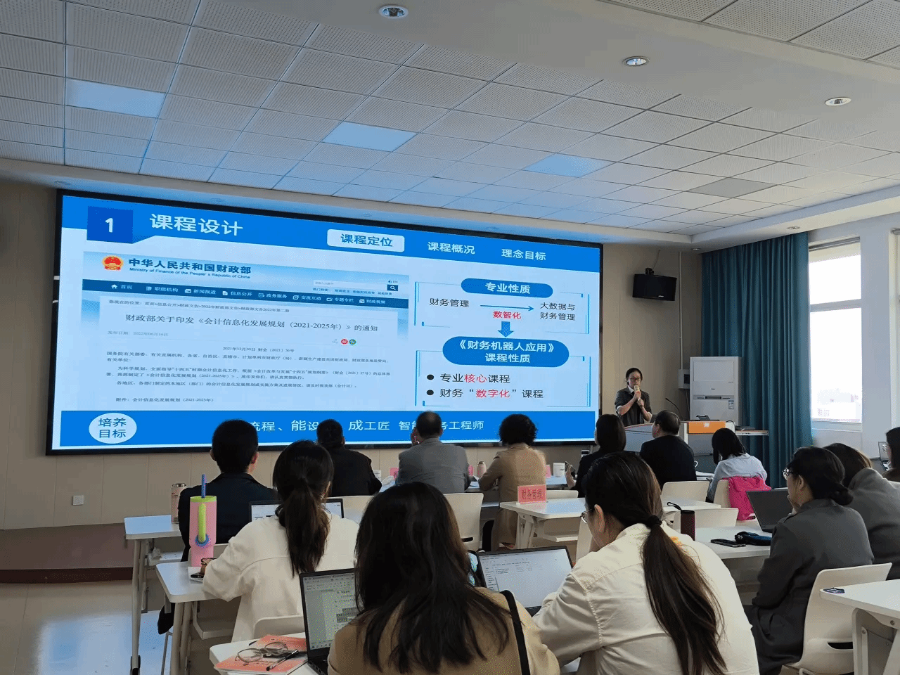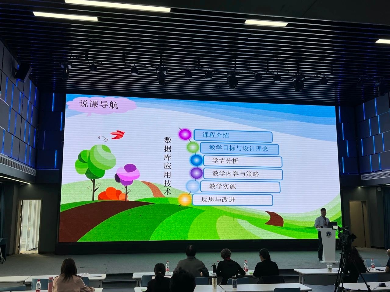 “說課程”比賽聚焦于課程建設,專業教師從課程設置、課程目標、課程內容、教學整體設計、教學實施過程、學生學習效果、反思改進等方面進行深入闡述。