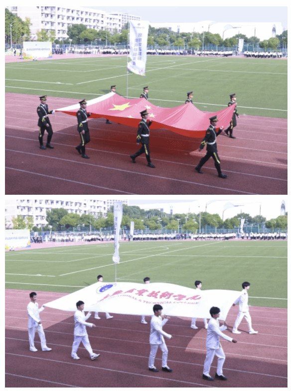 伴隨著慷慨激昂的運動員進行曲,國旗隊、校旗隊、鮮花隊、紅旗隊、各二級學院運動員代表方陣、各二級工會教師代表方陣和裁判團代表方陣等依次入場。他們邁著矯健的步伐、喊著嘹亮的口號,精神抖擻、意氣風發,斗志昂揚,充分展現了嘉職師生奮力拼搏、蓬勃向上的最佳風采。