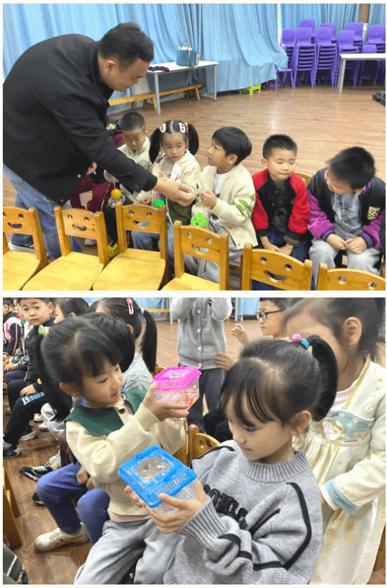 隨后,老師又帶領小朋友們走進魚類的世界。通過觀看各種色彩斑斕的魚類圖片和視頻,孩子們被這些水中精靈深深吸引。在介紹金魚時,老師不僅講解了金魚的歷史、品種和觀賞價值,還著重介紹了金魚的飼養技巧,如水溫控制、飼料種類、疾病預防等。老師為每位小朋友準備了小金魚作為禮物,鼓勵大家回家后與家人一起照顧這些小生命,記錄下金魚成長的點點滴滴。