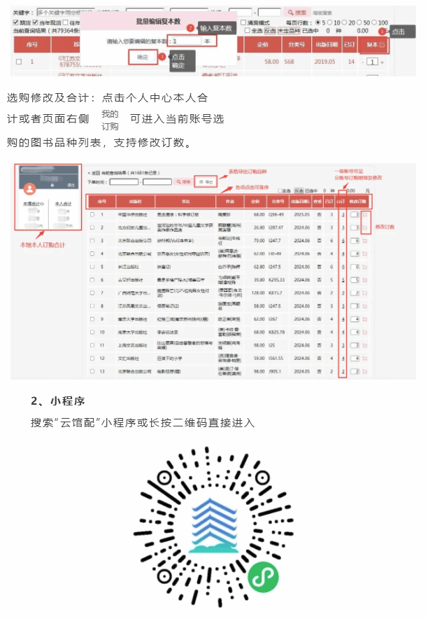 微信小程序同步PC端主要功能,只需輕動手指,就能夠實現快捷采書,除采選所需必要信息,還能夠實時查看訂購排行以及本館訂購圖書種類。