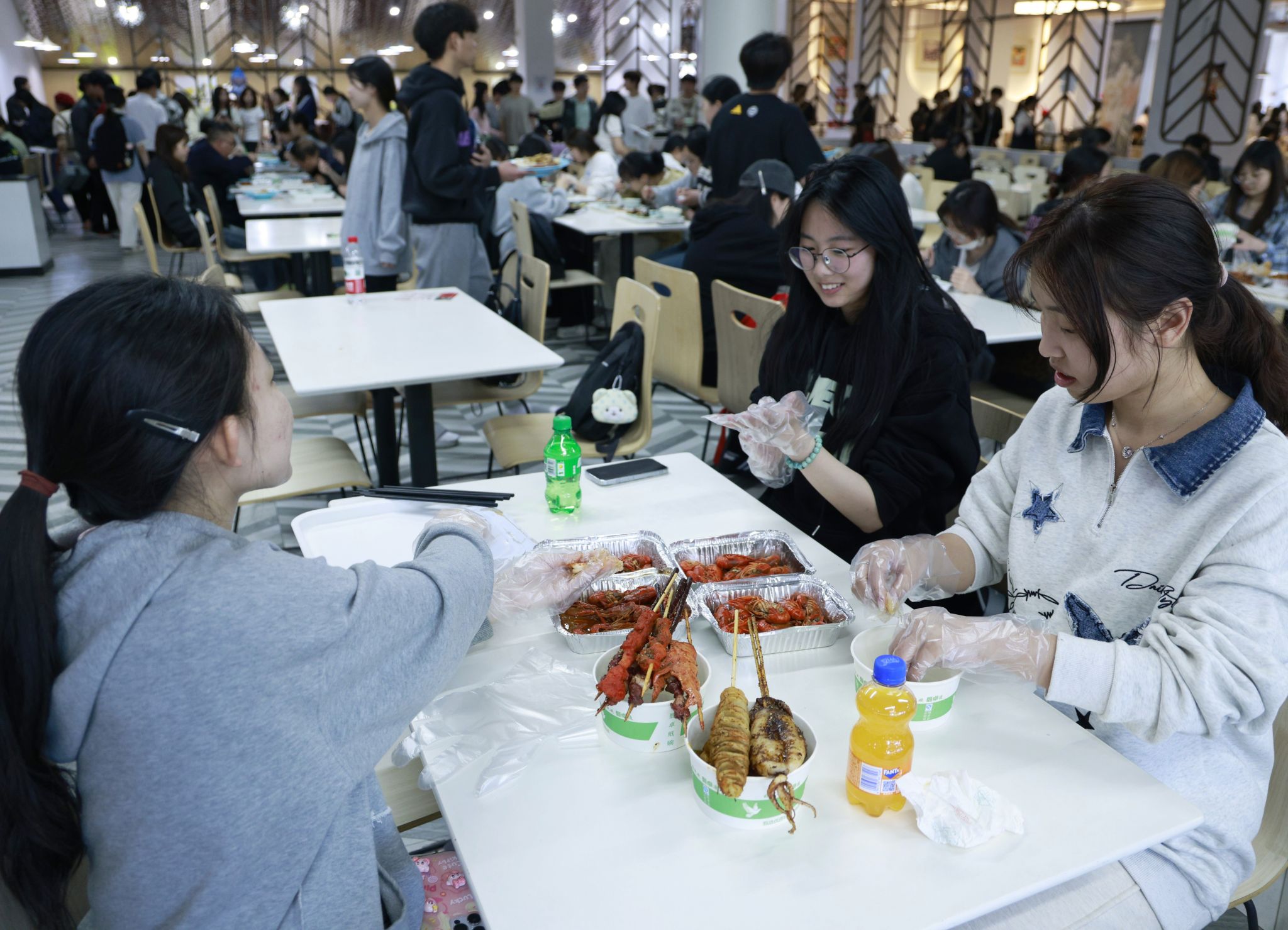 明德餐廳內,一盆盆熱氣騰騰、香氣四溢的小龍蝦正被端上餐柜。蒜蓉小龍蝦蒜香濃郁,細膩的蒜蓉包裹著鮮嫩的蝦肉,入口鮮美、回味無窮;十三香小龍蝦味道醇厚,多種香料的完美融合,賦予了小龍蝦獨特而豐富的口感;椒鹽味小龍蝦蝦殼酥脆、肉質細嫩。現場還有超多新鮮制作的生蠔、三元路臭豆腐、特色烤魚等十余種地方特色美食,師生們沉浸在美食帶來的愉悅和享受中,伸出大拇指連連夸贊:“味道好極了!”