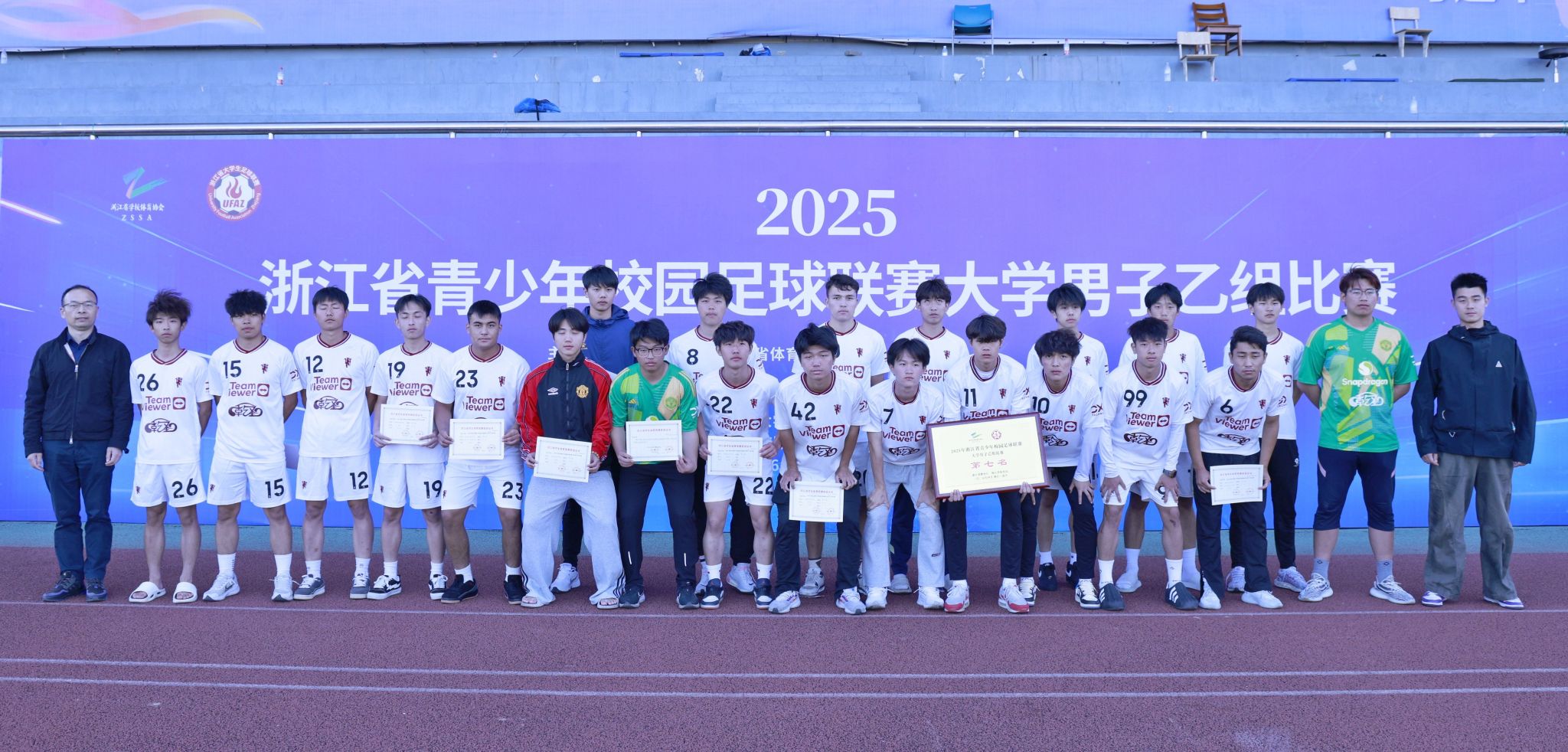 4月26日,2025浙江省青少年校園足球聯賽大學男子乙組比賽在嘉職院落下帷幕。本次比賽由浙江省教育廳、浙江省體育局主辦,浙江省學校體育協會執行,嘉興職業技術學院承辦,本次賽事吸引了共15所院校參與。經過六天六輪的角逐,嘉職院足球隊獲得第七名,學校獲體育道德風尚獎。