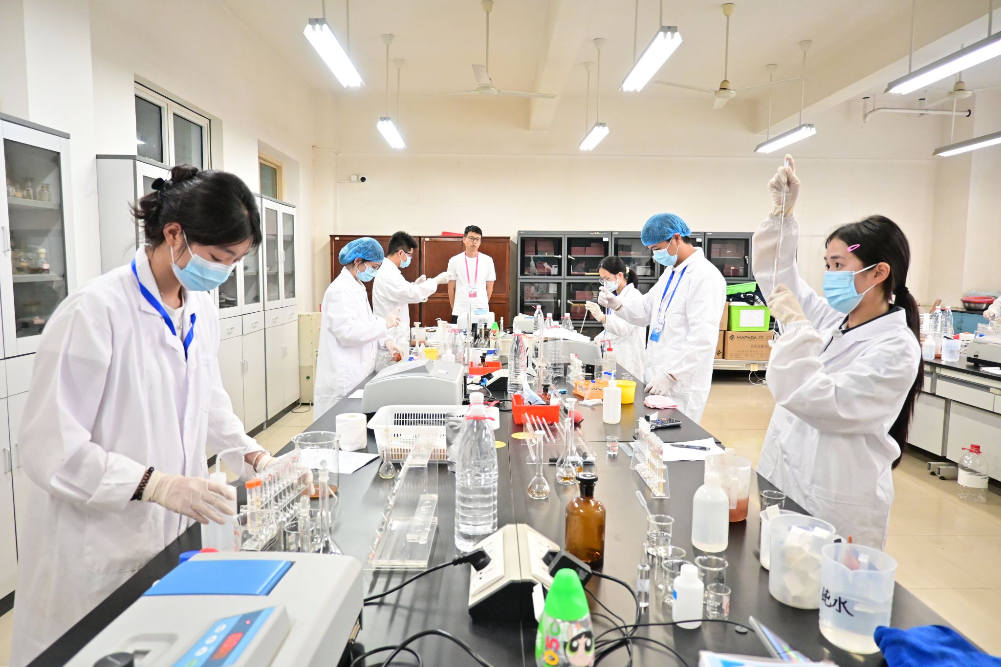 比賽中選手們身著工作服,在實(shí)驗(yàn)室緊張有序地進(jìn)行樣品測(cè)定,移液管精準(zhǔn)控量、比色皿反復(fù)校準(zhǔn),指尖操作如行云流水,裁判組全程記錄操作規(guī)范性,根據(jù)選手們的綜合表現(xiàn)評(píng)選出各組的個(gè)人與團(tuán)體獎(jiǎng)項(xiàng)。