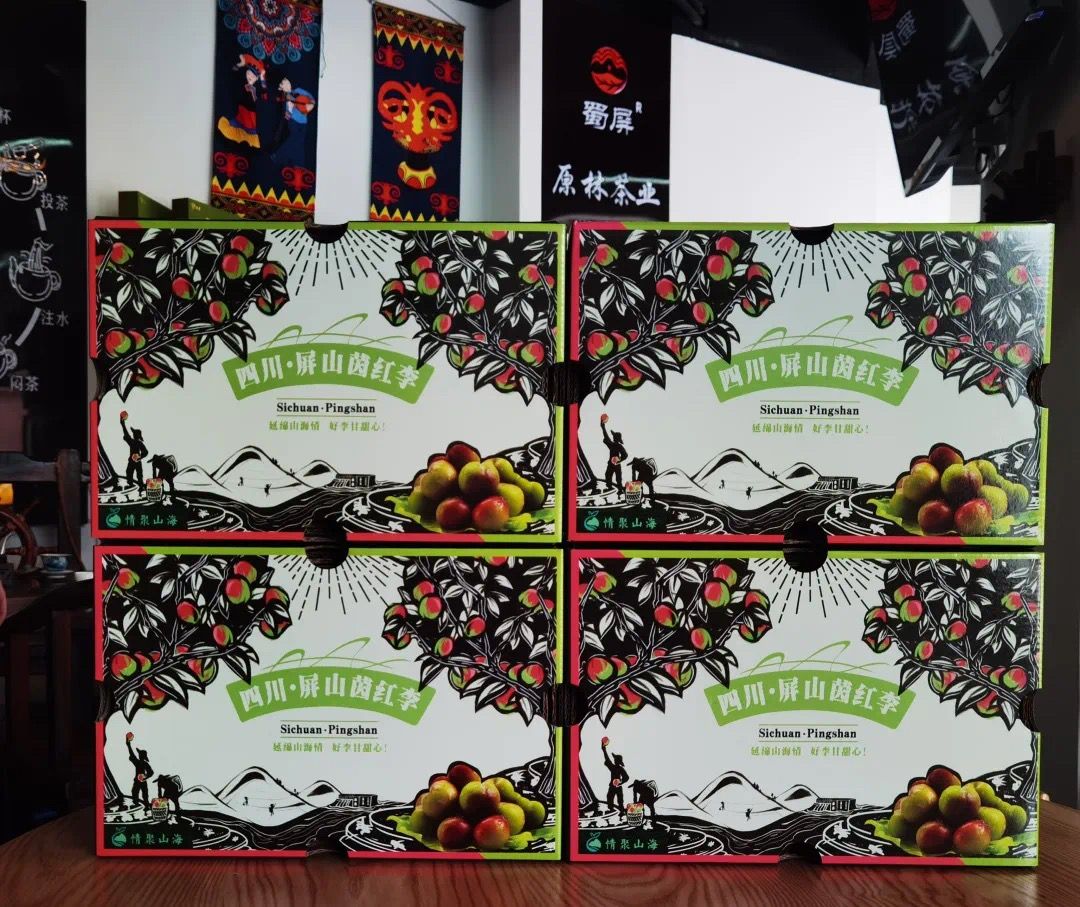 設(shè)計(jì)團(tuán)隊(duì)以“屏山山水”和“李果自然生態(tài)”為靈感,推出清新簡(jiǎn)約、富有辨識(shí)度的包裝方案。從色彩選擇到字體設(shè)計(jì),從材質(zhì)環(huán)保到結(jié)構(gòu)優(yōu)化,每一個(gè)細(xì)節(jié)都凝聚著專(zhuān)業(yè)匠心。新包裝一亮相,便贏得消費(fèi)者青睞,產(chǎn)品附加值顯著提升。又是一年茵紅李豐收時(shí),嘉職院黨員師生的設(shè)計(jì)包裝已應(yīng)用在今年的產(chǎn)品上,短視頻培訓(xùn)孵化的本土主播正熱情推介。在茵紅李產(chǎn)業(yè)幫扶中,構(gòu)建“電商直播+品牌包裝+社群團(tuán)購(gòu)”全鏈條銷(xiāo)售模式,創(chuàng)建“產(chǎn)地直供+全場(chǎng)景直播+社區(qū)直通車(chē)”的“共富工坊”幫扶體系,累計(jì)助銷(xiāo)農(nóng)產(chǎn)品超380噸,銷(xiāo)售額突破730萬(wàn)元,帶動(dòng)農(nóng)戶(hù)增收35%。果園邊、直播間里、包裝車(chē)間內(nèi),嘉職院師生黨員與屏山鄉(xiāng)親并肩奮戰(zhàn)的身影,勾勒出東西協(xié)作促振興的動(dòng)人畫(huà)面。