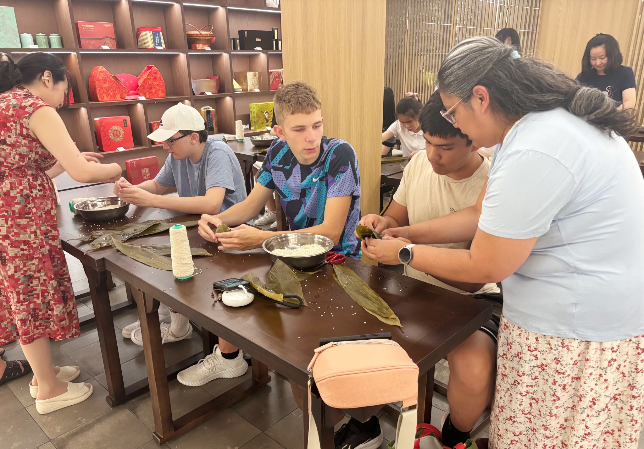 在非遺傳統文化體驗課程中,美國師生們通過學習裹粽、茶藝和香囊制作等活動,近距離感受了中華傳統文化的獨特魅力,在指尖的溫度與文化的碰撞中,悄然拉近了中西文明的距離。