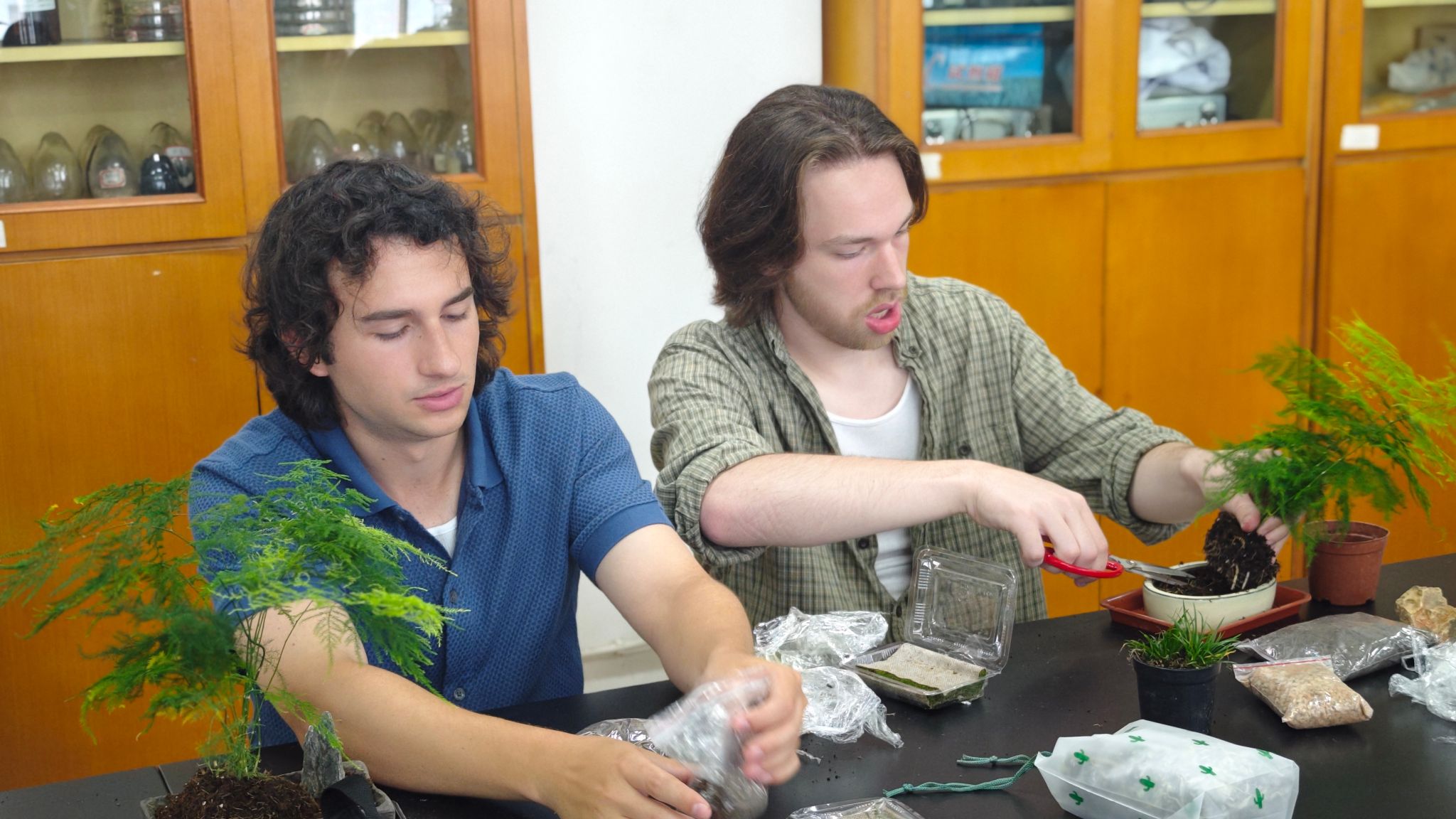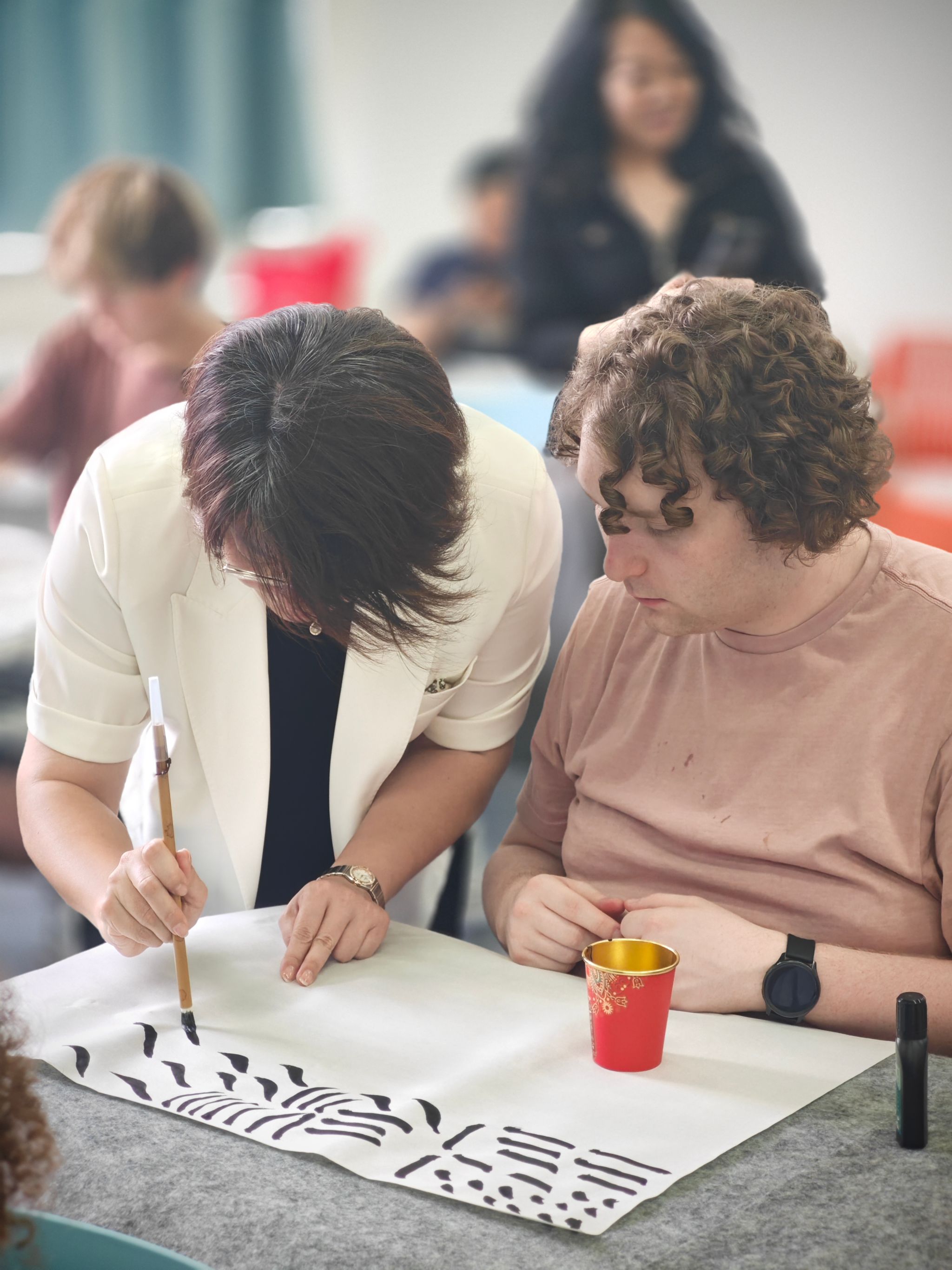 職教創新課堂同樣精彩紛呈。日常交際漢語課程通過小組游戲、角色扮演等方式,為初來乍到的美國師生們搭建起跨越語言障礙的橋梁;書法繪畫課堂上,美國師生們手握毛筆,在橫豎撇捺點間感受漢字的筋骨與神韻,在氤氳墨香中勾勒出憨態可掬的大熊貓,每一幅作品都滿溢著對東方美學的好奇與喜愛;水鄉微景觀制作課程中,美國師生們更是興致盎然,從挑選容器擺件,到搭配翠綠的苔蘚、細碎的砂石,每一個人都力求展現水鄉意境。
