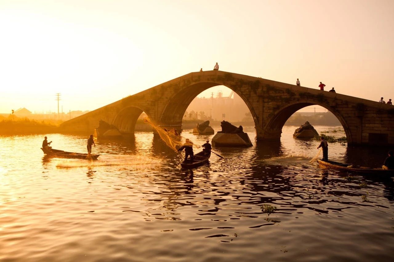 站在長虹橋上,腳下的運河水正嘩嘩奔涌。這座72.8米的三孔石拱橋,把河東河西的煙火連成一脈。它是“運河入浙第一橋”,自610年江南運河貫通,王江涇從邊鄙小村變成“吳越通津”,到明萬歷年間,在嘉興知府吳國仕的倡議下,工匠們用“堆土法”一點點壘起,一層石頭一層土,像搭積木似的把拱架起來,這種“逆向施工”的智慧,讓軟土地基上的石橋挺過了數百年的風雨。