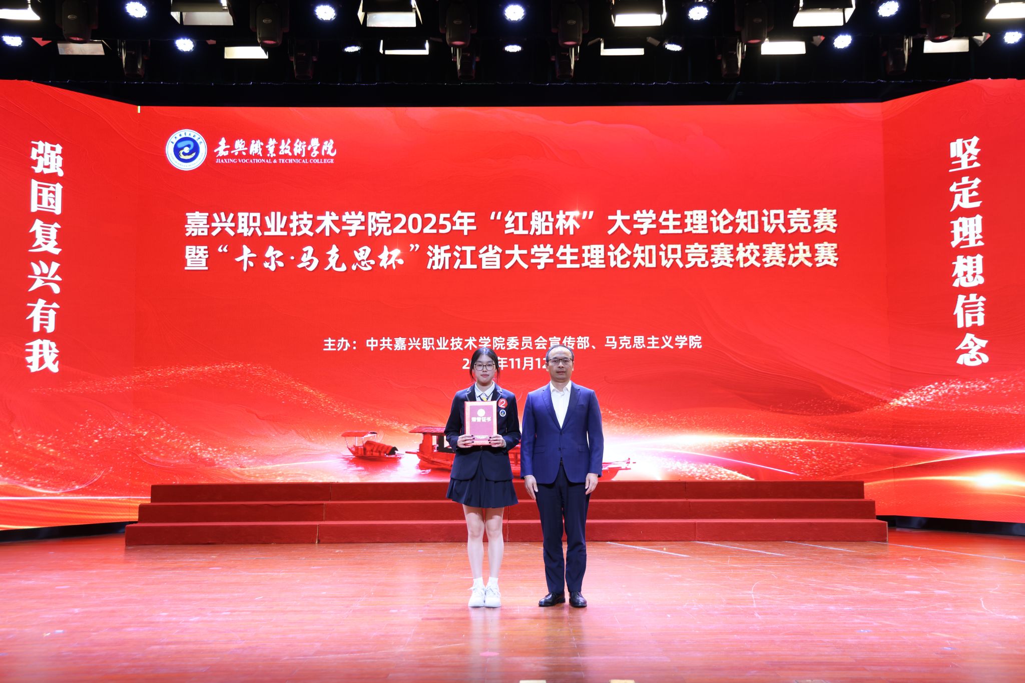 為深入學習貫徹習近平新時代中國特色社會主義思想,落實黨的二十大和二十屆二中、三中、四中全會精神,教育引導青年學子守好紅色根脈、爭做時代新人,以賽促學、以賽促行,11月12日,嘉職院舉辦“紅船杯”大學生理論知識競賽。黨委委員、副校長陳海忠出席并為獲獎選手頒獎。