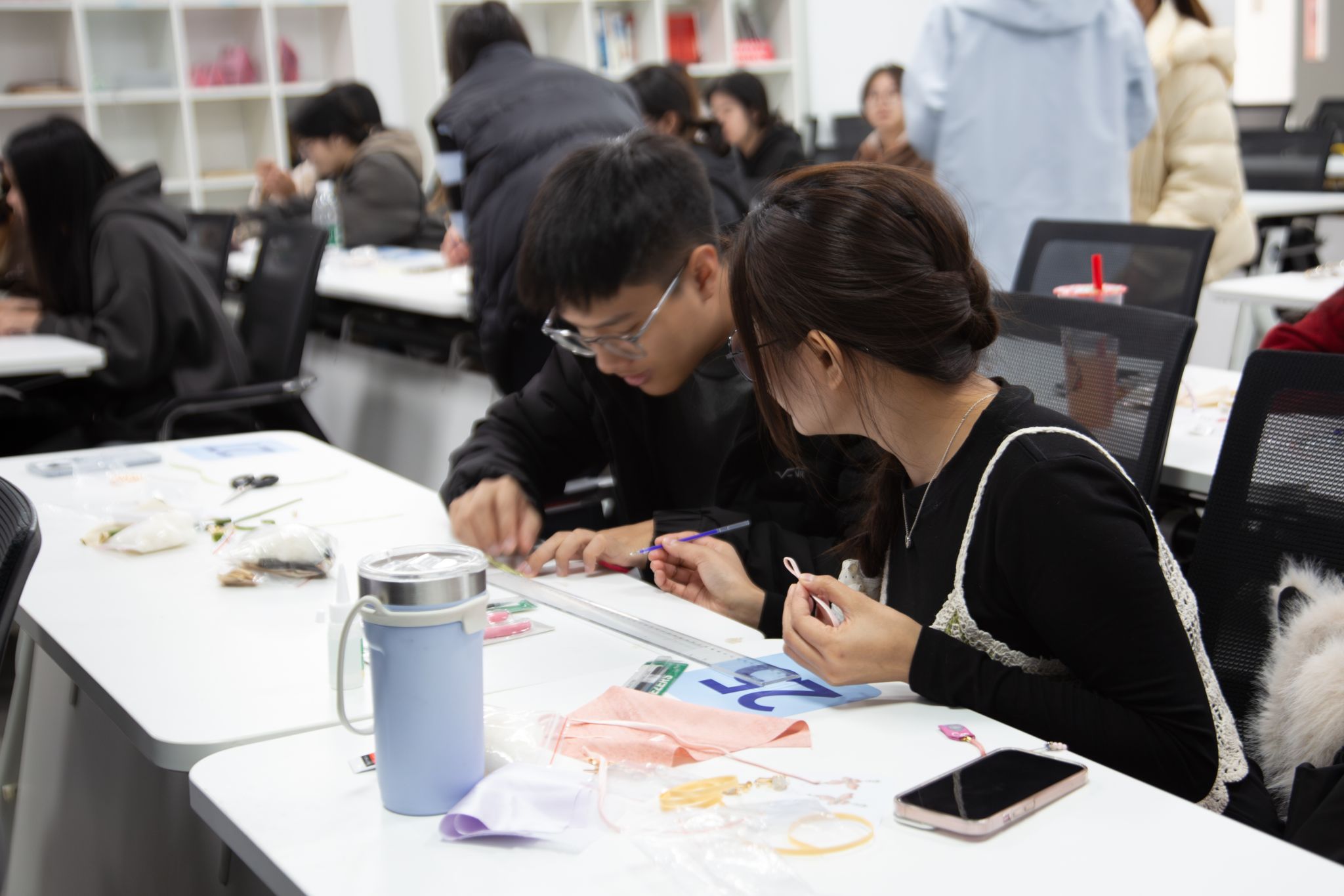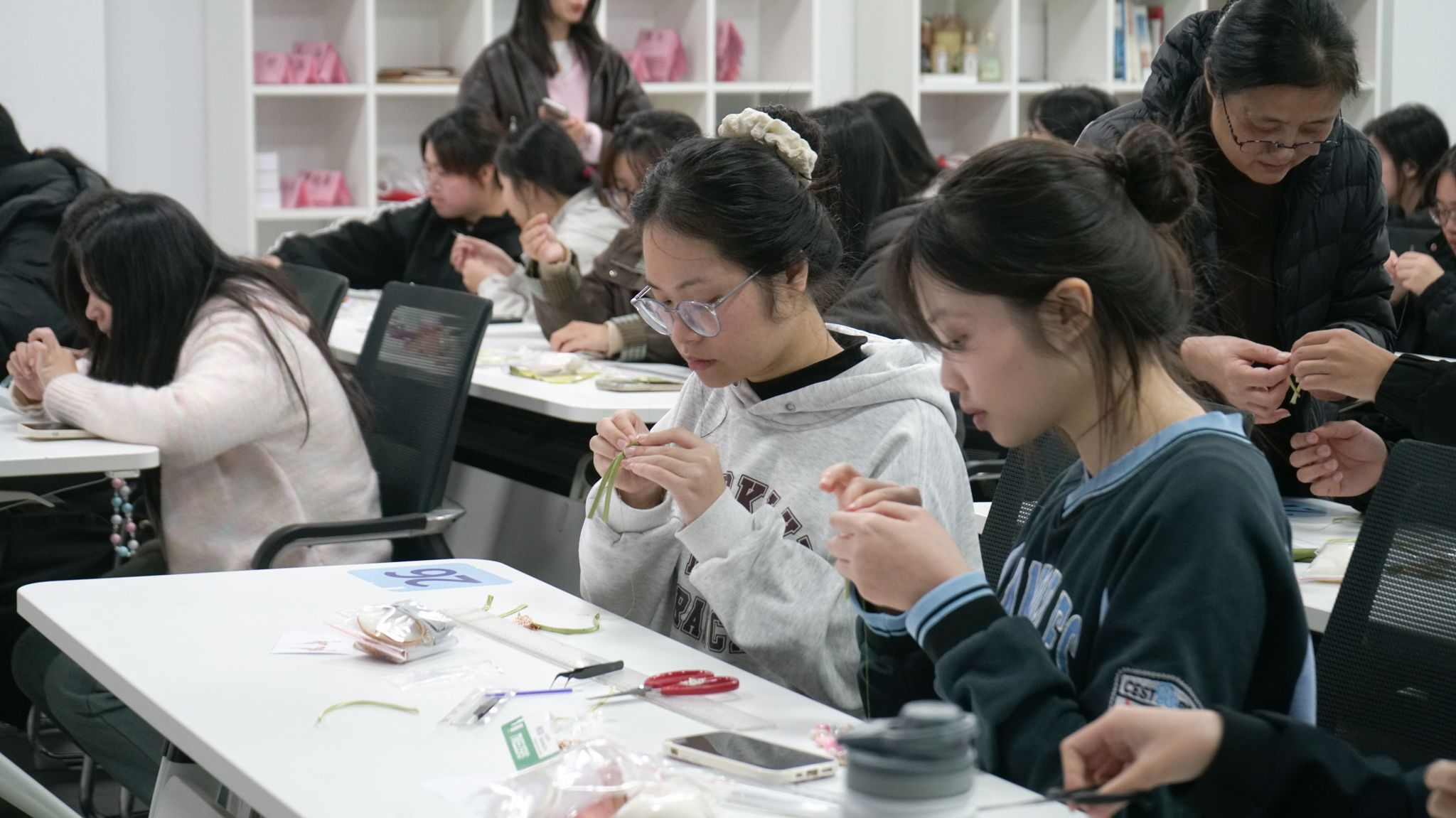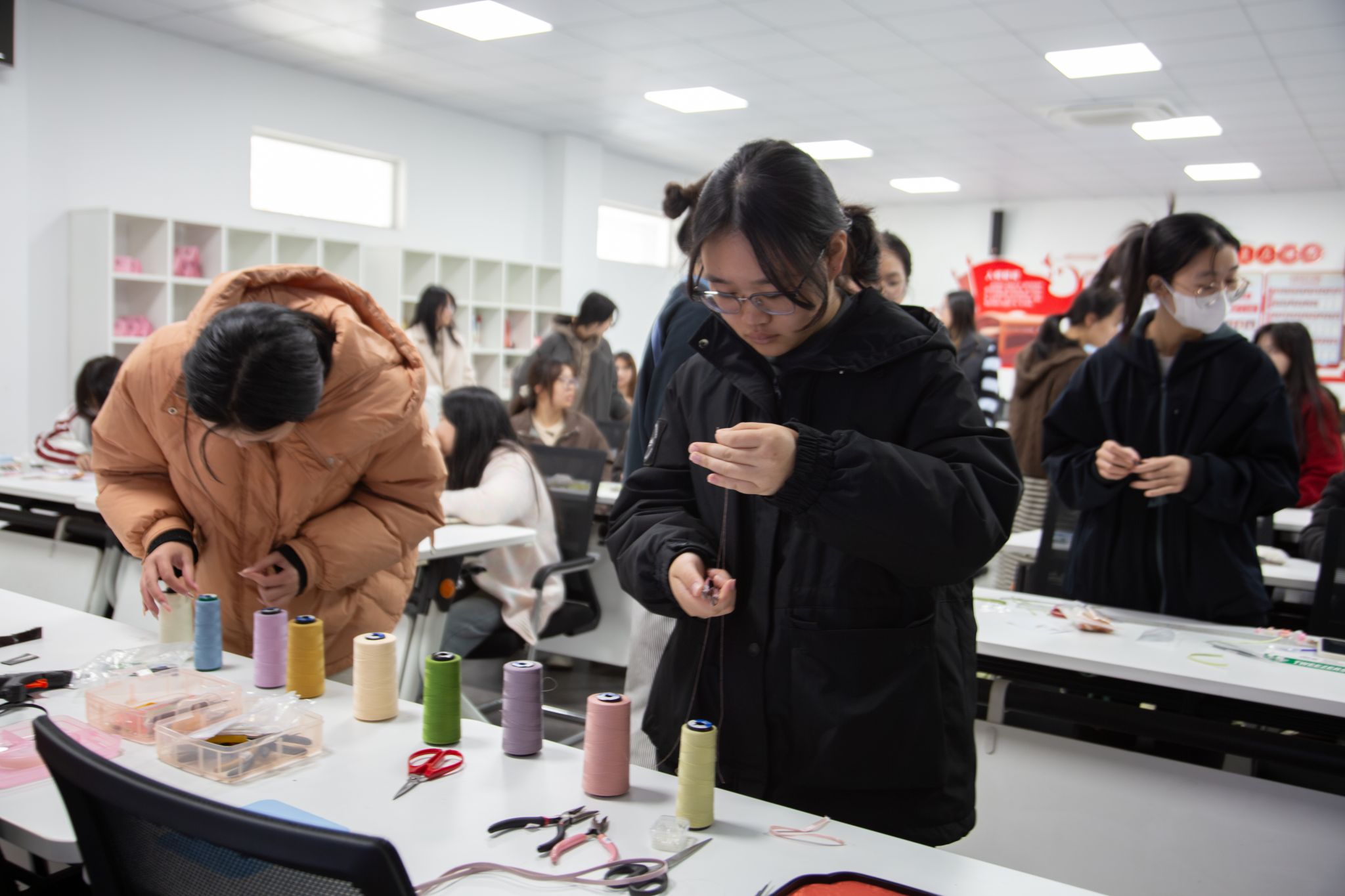 “注意看,這個(gè)‘一字扣’看似簡單,卻需要手、眼、心的完美配合。”在企業(yè)導(dǎo)師手把手的指導(dǎo)下,同學(xué)們將絲線在指尖纏繞、穿插、拉緊。每一個(gè)步驟都是一次耐心的磨練,每一個(gè)結(jié)扣都是對(duì)工匠精神的切身感悟。