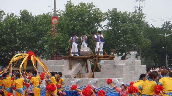 整場大巡游共分嘉興記憶、水鄉風情、秀美江南和節日狂歡4個板塊,共20個方隊。嘉職院的同學們參加了 “端午習俗”、“江南船拳”和“筑堤圍塘”三個方隊的表演。為了演出的順利進行,3個方隊的192名同學頂著酷暑堅持訓練,又冒雨進行了彩排和聯排,功夫不負有心人,現場的演出非常的精彩,獲得了圓滿成功!
