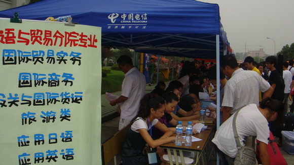 報到、查詢、登記、保險.....有些急切,有些自信,有些泰然,一個個青春洋溢的生命,一張張陽光燦爛的笑臉,在主干道旁依次擺開的各分院帳篷下,新生們紛紛履行著入學的各項手續。生環分院的園林、花卉、動物防疫與檢疫,機電分院的機電、數控,信管分院的電子商務、信息、管理,外貿分院的報關、旅游、貿易、英語、日語,紡藝分院的紡織、服裝設計等專業的報名點前都擠滿了新生。