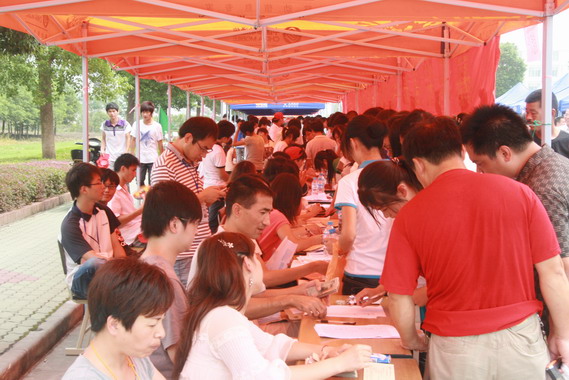 紅帳篷下火紅的報到場面