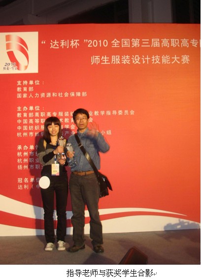 10月23日晚,“2010全國第三屆高職高專院(校)師生服裝設計技能大賽”在中國達利制衣有限公司時裝表演廳舉行總決賽,經過緊張激烈的角逐,我院紡藝分院服裝081班龐姍姍同學的作品《破界》殺出重圍,喜獲“達利杯”全國服裝設計大賽學生組銀獎和最佳服飾搭配獎。
