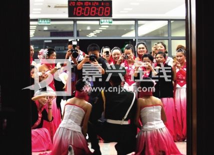 候場的嘉職院學生演員們成為媒體關注的焦點