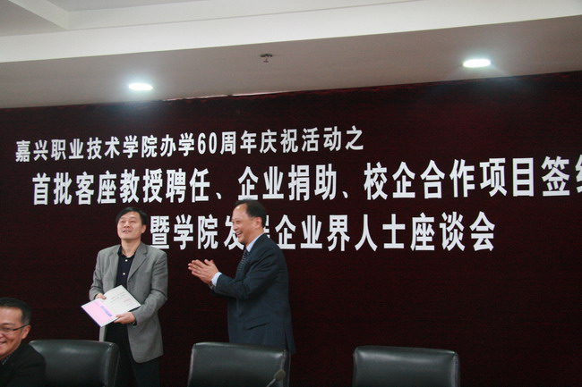 他說(shuō),職業(yè)教育具有實(shí)踐性、開(kāi)放性和職業(yè)性的根本屬性,職業(yè)教育必須融入產(chǎn)業(yè)、行業(yè)、企業(yè)、職業(yè)、實(shí)踐五大要素。特別是在師資隊(duì)伍建設(shè)上,除了學(xué)校的專業(yè)教師以外,來(lái)自企業(yè)一線的企業(yè)老總、技術(shù)專家和能工巧匠,是職業(yè)教育教學(xué)團(tuán)隊(duì)的另一重要組成部分,聘任客座教授也是打造“雙結(jié)構(gòu)、雙素質(zhì)”專業(yè)教學(xué)團(tuán)隊(duì)的重要途徑。今天,來(lái)自嘉興各行各業(yè)的11位專家愉快地接受了學(xué)院客座教授的聘任,這是學(xué)院的幸事,也是廣大學(xué)生的福祉,他們今后將有機(jī)會(huì)面對(duì)面接受各位專家的教育。 浙江建達(dá)科技股份有限公司的設(shè)備捐贈(zèng)、浙江嘉欣絲綢股份有限公司周?chē)?guó)建董事長(zhǎng)的助學(xué)金注資以及五芳齋獎(jiǎng)學(xué)助學(xué)金的設(shè)立,既是對(duì)學(xué)院辦學(xué)的大力支持,也為廣大貧困學(xué)生帶來(lái)了福音,企業(yè)家在自身不斷壯大和發(fā)展的同時(shí),也積極承擔(dān)起了社會(huì)責(zé)任,以自己的善舉回報(bào)社會(huì)。與嘉興市科技城的合作,必將使我院的專業(yè)設(shè)置與區(qū)域產(chǎn)業(yè)發(fā)展的對(duì)接度更加緊密,也將更好地解決人才培養(yǎng)過(guò)程中面臨的實(shí)踐教學(xué)、頂崗實(shí)習(xí)、畢業(yè)生就業(yè)等問(wèn)題。與華夏防爆電氣有限公司等4家企業(yè)咨詢和技術(shù)服務(wù)的合作,是學(xué)院踐行服務(wù)地方經(jīng)濟(jì)社會(huì)發(fā)展辦學(xué)宗旨的具體體現(xiàn)和責(zé)職所在。在今后的辦學(xué)過(guò)程中,我們將進(jìn)一步依托教學(xué)資源,積極為企業(yè)和社會(huì)開(kāi)展崗位培訓(xùn)、技能鑒定和技術(shù)研發(fā)等活動(dòng),努力提高學(xué)院的社會(huì)服務(wù)能力。同時(shí),他也衷心希望各位行業(yè)領(lǐng)導(dǎo)、企業(yè)老總、技術(shù)專家和校友,對(duì)學(xué)院的專業(yè)設(shè)置、人才培養(yǎng)、技術(shù)服務(wù)提出寶貴的意見(jiàn)和建議。