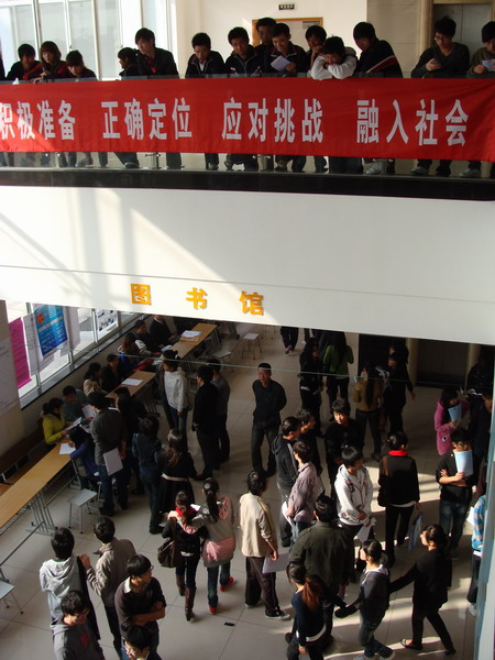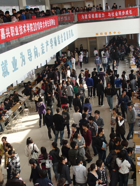 為了方便企業(yè)和學(xué)生更直接地交流,嘉職院為嘉興下屬縣(市)的用人單位專門設(shè)立了專區(qū),在圖文信息中心二樓、三樓和報告廳通道內(nèi),招聘攤位和應(yīng)聘學(xué)生把現(xiàn)場擠得滿滿當(dāng)當(dāng)。考慮到嘉職院畢業(yè)生和所學(xué)專業(yè)中有非常契合現(xiàn)代農(nóng)業(yè)管理的內(nèi)容,2010“星耀南湖”大學(xué)生現(xiàn)代農(nóng)業(yè)招聘活動也成為此次校園招聘會的一大亮點,前來的50家企業(yè)共推出400多崗位。此外,對于前來“獵頭”的70多家臺資企業(yè),嘉職院還專門設(shè)立臺資招聘專區(qū)。