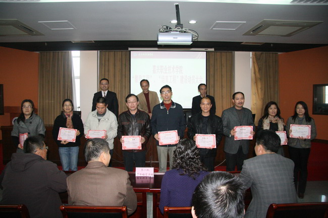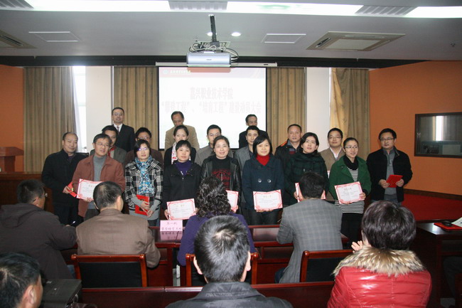隨后,第一批“攀登工程”培養人選張金美、第一批“培育工程”培養人選王顯成分別代表首批“攀登、培育工程”人員做了發表感言,總結了自己入選“攀登、培育工程”一年以來所做的工作和取得的成績,以自己的實際經歷證實了“攀登、培育工程”在促進專業教師的教育教學水平、科研能力和社會服務能力方面所起的作用。接著,李朝敏代表第二批“攀登、培育工程”入選教師發言,決心不斷提高思想覺悟水平,爭做一名值得信任的教師;不斷提高專業技能水平,爭做一名“雙師型”教師;不斷提高科學研究水平,爭做一名專家型教師;不斷提高產學合作水平、爭做一名外向型教師。