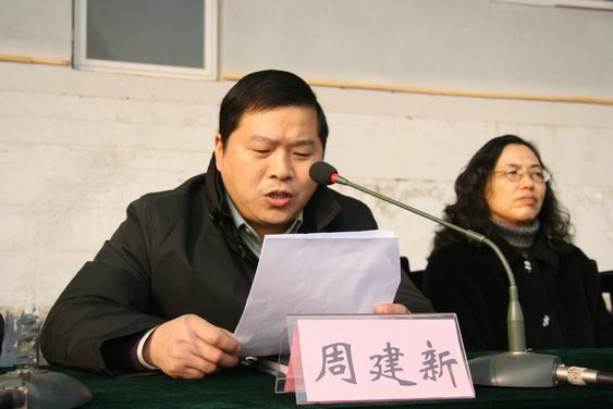 學院黨委副書記、軍訓團政委周建新做軍訓動員講話