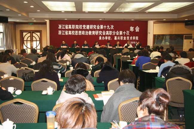 12月27日上午,浙江省高職院校黨建研究會第十九次年會、省高校思想政治教育研究會高職分會第十次年會在嘉興沙龍國際賓館召開,會議由我院承辦。自全省高職院校的100多位領導和嘉賓出席全省高職院校黨建和思想政治教育研究會2010年年會。省委教育工委副書記、省教育廳副廳長李魯,嘉興市委常委、組織部長楊立平出席會議,會議由全省高職院校黨建研究會會長李逸凡主持。
