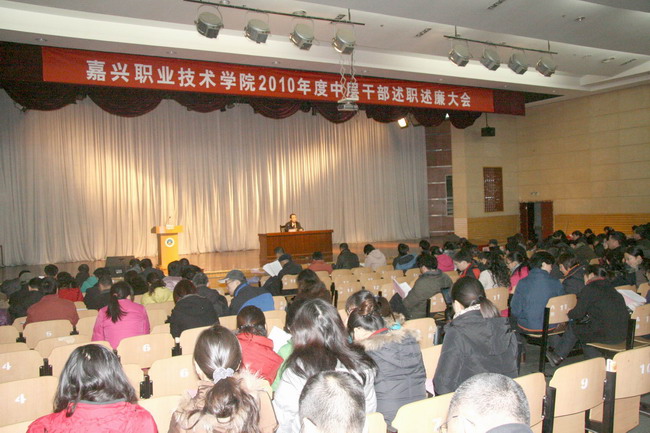 2011年元月5日下午,我院在二號樓報告廳內召開2010年度中層干部述職述廉大會,學院黨政領導及中層助理以上干部全體與會,會議由黨委委員、副院長都建明主持。