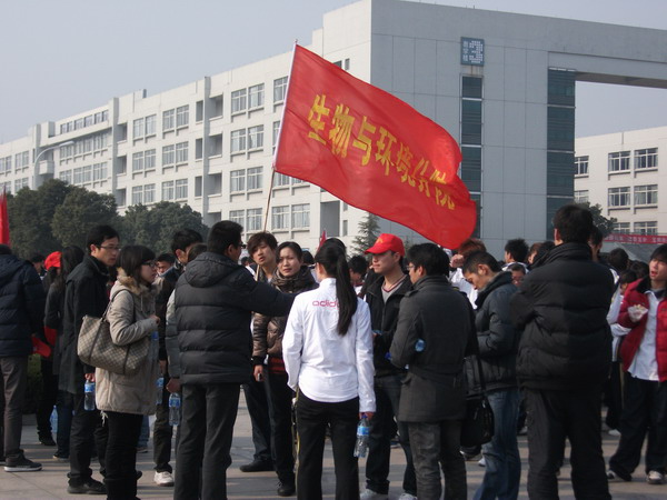 在這個陽光明媚的中午,各分院代表隊在12:15整隊完畢,學(xué)工部副部長魯中海老師和團委書記錢燕婷老師再次向各帶隊老師強調(diào)了安全問題,于12:30準(zhǔn)時出發(fā)。領(lǐng)頭的是團學(xué)干部隊伍,飄揚的校旗指引著前進的方向。接下來依次是繼續(xù)教育分院、生物與環(huán)境分院、機電與汽車分院、外語與貿(mào)易分院、信息與管理分院和紡織工貿(mào)與藝術(shù)設(shè)計分院的方隊,同學(xué)們在各團總支書記和體育老師們的帶領(lǐng)下向市民廣場整齊進發(fā)。