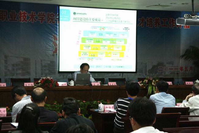 5月19日,省教育廳、省財政廳省級示范建設中期評價暨人才培養工作評估專家組一行8人蒞臨我院并聽取工作匯報。省教育廳高教處金仁康副處長出席了匯報會。學院黨委書記周奇跡致歡迎辭,院長盛健向專家組作了“雙評”工作匯報,匯報會由專家組組長、浙江大學教務處原處長、寧波大紅鷹職業技術學院原院長俞瑞釗教授主持。在校的學院黨政領導,中層及助理以上干部,專業負責人和副高以上職稱教師代表參加會議。