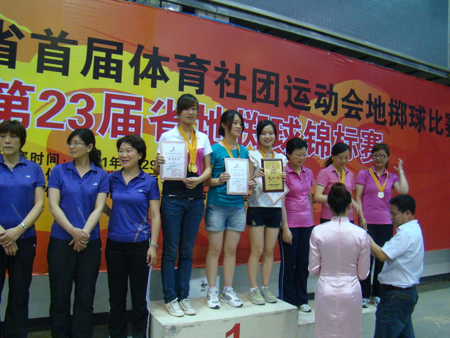 2011年6月1日至6月2日,浙江省首屆社團運動會暨23屆浙江省地擲球錦標(biāo)賽在溫州的浙江工貿(mào)職業(yè)技術(shù)學(xué)院舉行。經(jīng)過3天的激烈角逐,各類獎牌被各強隊瓜分,其中代表嘉興市出戰(zhàn)的嘉職院地擲球隊在本次比賽中獲得了4金3銀5銅。嘉興市地擲球總教練施群英表示,對以上成績非常滿意,所獲成績已經(jīng)超出了預(yù)期的目標(biāo)。