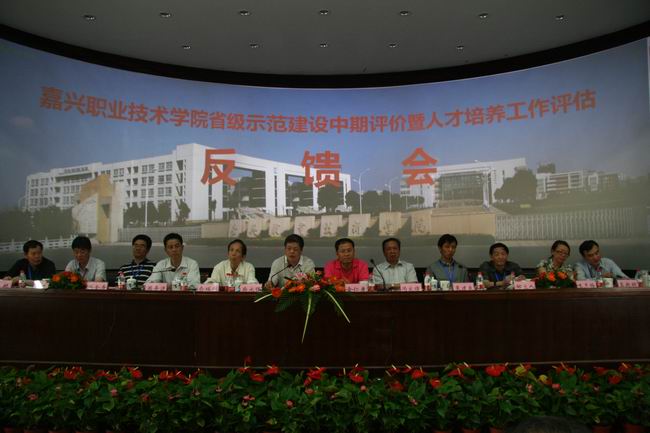 5月19-21日上午,省教育廳、省財政廳以俞瑞釗教授為組長的一行8人專家組,對我院進行了省級示范建設中期評價暨人才培養工作評估。21日上午,我院在4號樓109報告廳隆重舉行了“兩評”工作反饋會。評估組專家,省教育廳高教處副處長金仁康、嘉興市副市長柴永強、市政府副秘書長張碩、市教育工委書記、教育局局長馮家俊、副局長朱軍一,在校的學院領導班子成員出席了大會,我院全體中層干部、專業帶頭人、專業負責人及副高以上職稱專任教師參加了會議。反饋會由專家組副組長來建良主持。