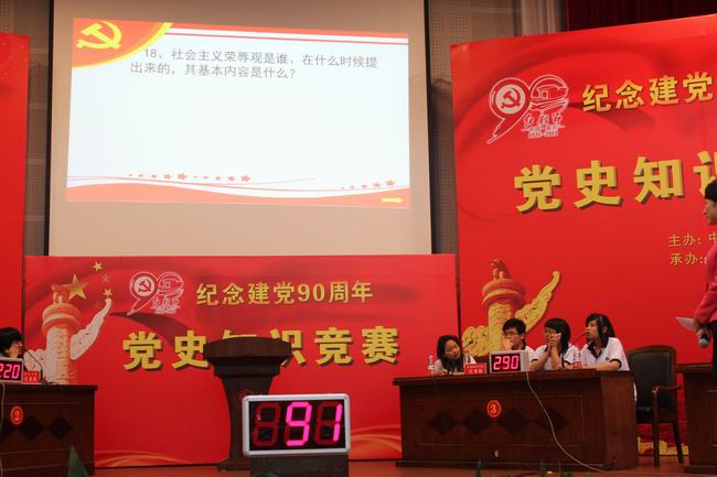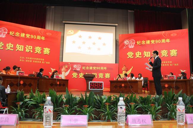 6月12日下午,由中共嘉興市委宣傳部主辦,團市委、市教育局、嘉廣集團承辦的“嘉興市紀念建黨90周年黨史知識競賽”決賽在嘉興學院報告廳隆重舉行。中共嘉興市委組織部副部長熬考權,市委宣傳部副部長、市文明辦主任王蕾,團市委書記朱林森,嘉興市教育局副書記鮑忠良,嘉廣集團黨組書記楊阿敏等領導出席活動。各高校共組織1000多名學子參加了本次活動。經過八所高校歷時一個多月的初賽和復賽,嘉興學院、上海同濟大學浙江分院、南湖學院和嘉興職業技術學院共四所高校代表隊晉級了最后的決賽。經過緊張激烈的角逐,共由四位同學組成的我院代表隊在決賽中榮獲一等獎。