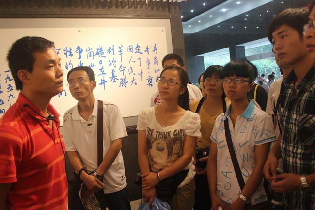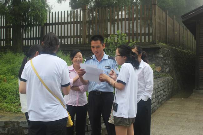 在參觀小井、水口、龍?zhí)镀俨肌ⅫS洋界等紅色景區(qū)時(shí),大家深深被紅色文化與秀美山川所吸引。每到一處,同學(xué)們邊欣賞風(fēng)景、瞻仰革命勝跡,邊用手中的相機(jī)記錄下來。實(shí)踐期間,同學(xué)們積極向當(dāng)?shù)鼐用窈颓拜吜私飧嗟漠?dāng)?shù)貧v史文化知識(shí),了解中國(guó)革命的艱苦斗爭(zhēng)史和偉大的井岡山精神,同時(shí)10名同學(xué)分組向游客發(fā)放調(diào)查問卷,他們抓住在旅游大巴車上、風(fēng)景區(qū)及旅館休息的時(shí)間對(duì)紅船精神、井岡山精神等中國(guó)革命精神的傳承進(jìn)行了實(shí)地調(diào)查。學(xué)習(xí)旅游管理專業(yè)的潘星星同學(xué)一邊虛心向當(dāng)?shù)貙?dǎo)游請(qǐng)教,一邊結(jié)合自己所學(xué)的專業(yè)知識(shí)為游客們義務(wù)講解,并一展歌喉為他們唱起了紅歌,贏得一群上海游客的陣陣掌聲。