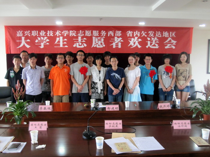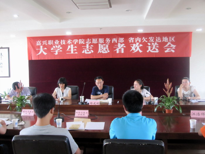 7月23日下午,院團(tuán)委在行政樓208會(huì)議室舉行了我院2010年西部計(jì)劃志愿者歡送會(huì)。學(xué)院兩項(xiàng)計(jì)劃工作領(lǐng)導(dǎo)小組組長(zhǎng)、黨委委員、副院長(zhǎng)都建明,團(tuán)委書記錢燕婷及相關(guān)分院的領(lǐng)導(dǎo)和團(tuán)總支書記,以及我院2011年西部計(jì)劃兩位志愿者、省內(nèi)欠發(fā)達(dá)地區(qū)一位志愿者、學(xué)院青年志愿者代表等共二十余人參加了歡送會(huì)。