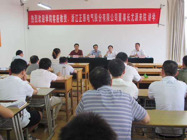 為深化“校企合作、工學結合”的教學改革,做好示范建設的下階段工作,在新學期開好頭起好步,9月1日上午,機電與汽車分院邀請了正原電氣董事長、學院客座教授尤源先生為分院全體教職工講授了“做好校企合作、關鍵是學校老師和企業的深層次合作”的精彩一課,黨委委員、副院長都建明出席會議并作講話。會議由分院黨總支書記童云飛主持。
