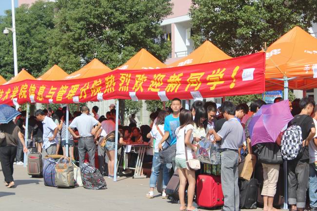 9月15日是新生報名的第一天也是最后一天。六大分院均在校園東西主干道上擺起長龍陣,以方便學生報到注冊。財務管理、工程造價、國際貿易等相對熱門專業前報到者幾乎爆棚,相對冷門一些的專業,如涉農類、紡織類由于受家長和學生認識所限,盡管社會需求量大,報考人數仍然不多。