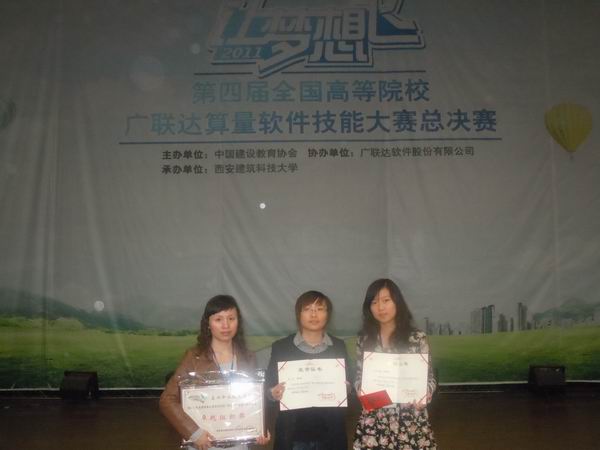 10月17日至19日在西安建筑科技大學舉行的第四屆全國高等院校廣聯達軟件技能大賽全國總決賽上傳來好消息,代表我院參賽的工程092班周曉檬同學獲二等獎和800元獎金,工程091班賈雙丹同學獲得三等獎和500元獎金。指導教師賀會團和姚署霖兩位老師被評為“優秀指導教師”。我院被大賽組委會評為“卓越組織獎”。同時根據大賽組委會評審,我院還有5名同學獲浙江賽區一等獎,10名同學獲浙江賽區二等獎和部分優勝獎。