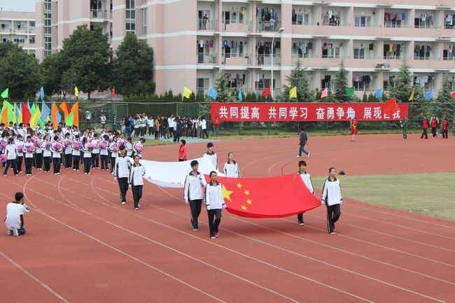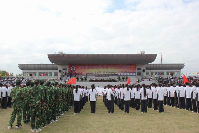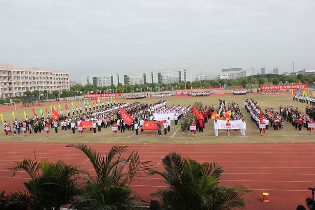 下午1時整,在激進昂揚的運動員進行曲中,氣宇軒昂的國旗隊、英姿颯爽的校旗隊、青春飛揚的鮮花隊、色彩繽紛的彩旗隊及由生環分院、機電分院、信管分院、外貿分院、紡藝分院、繼續教育分院、社科部體軍藝部等7個教學單位運動員組成的方陣,加上行政3個小組和裁判員隊伍共13個方陣,踏著鏗鏘有力的節奏,健步走進田徑場,全場觀眾報以熱烈的掌聲。