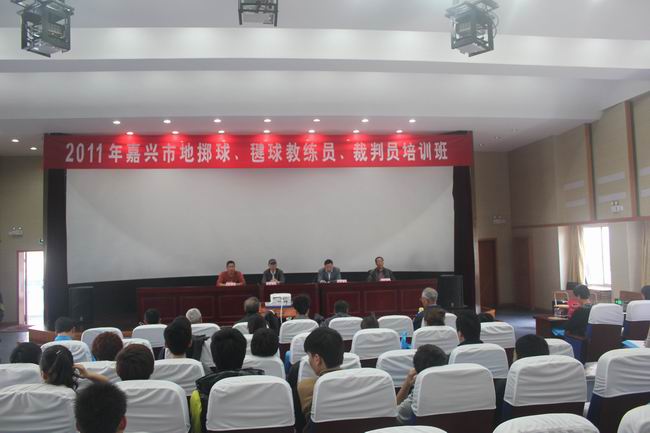 11月3日上午,2011年嘉興市地擲球、毽球教練員、裁判員培訓班在我院舉行開班儀式,全市共100名體育界人士和地擲球、毽球愛好者參加培訓。國際地擲球聯合會執行委員會委員姚志漢,率法國地擲球代表團親臨現場,他們代表國際地擲球聯合會的法國技術官員與嘉職院代表隊進行了地擲球運動的技術交流,并將在我院進行為期兩天的經驗交流和技術指導。
