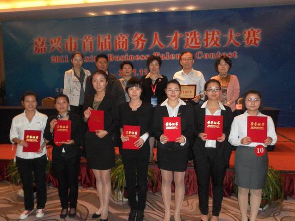 11月8日在嘉興沙龍國際賓館舉行的由嘉興市商務局、市人力資源和社會保障局等單位舉辦的嘉興市首屆商務人才技能大賽決賽上傳來佳績,我院選手不畏強手,敢打敢拼,葉貝貝同學(英語09-3)獲得唯一一個最佳英語口語獎,黃呂雙(奧杰班)同學獲得二等獎,奧杰班的胡勝燕、李浩娟、邵燕和國貿09-1的王璐丹、徐麗同學獲得三等獎(這次大賽指導團隊為:孟建國、王艷、項捷、顧曉棟、劉永泉、劉振飛、傅永紅)。我院由于外語外貿分院這次組織周密、輔導細致、工作扎實、選手整體表現水平優秀,還被組委會評為唯一的“最佳組織獎”單位。