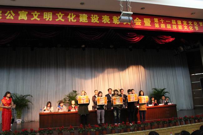 大會首先由魯中海副部長宣讀了《關(guān)于表彰2010學(xué)年第2學(xué)期公寓文明文化建設(shè)先進(jìn)集體和個人的決定》的文件,他對在2010學(xué)年第2學(xué)期公寓文明文化建設(shè)中作出重要貢獻(xiàn)、取得優(yōu)異成績的黨建工作進(jìn)公寓先進(jìn)活動小組、先進(jìn)個人、文明寢室創(chuàng)建先進(jìn)班級、優(yōu)秀樓層長、寢室長等進(jìn)行了表彰,并頒發(fā)了榮譽(yù)證書。接著,魯中海副部長又宣讀了《2011學(xué)年黨建工作進(jìn)公寓活動小組副組長、自律委員會聘用通知》,并頒發(fā)了聘書。他對我院公寓自律委員會為維護(hù)廣大同學(xué)權(quán)益所做的工作和取得的成績表示肯定和贊揚(yáng),并由衷希望新一屆的黨建活動小組和自律委員會成員在鞏固成果、提升自我基礎(chǔ)上,以更加良好的精神面貌、更加專業(yè)化的服務(wù)水平為同學(xué)們排憂解難,發(fā)揮好紐帶和橋梁作用,為我院的學(xué)生教育、管理與服務(wù)工作做出貢獻(xiàn)!