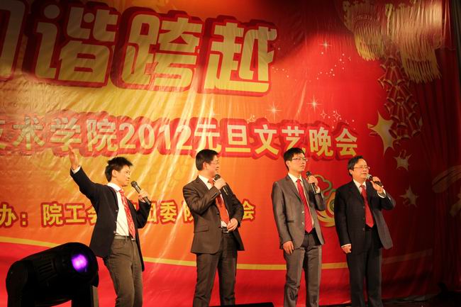 歲月流金,歌聲如潮。12月30日晚,學院2號樓報告廳內,彩燈璀璨、喜氣洋洋,學院全體黨政領導、全體教職工、離退休老同志以及各分院的學生代表齊聚一堂,觀看由學院工會、團委、婦委會聯合主辦的2012元旦文藝晚會,度過了歡樂的歲末之夜。