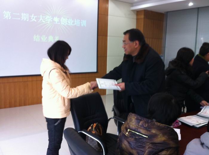 1月6日,培訓班在外語廣場舉行了簡短的結業典禮,院婦委會副主任高慧英老師宣讀了結業名單,學院黨委副書記、紀委書記沈建龍、院婦委會主任姚寧屏為全體學員頒發了結業證書。沈書記在講話中向各位學員表示祝賀,勉勵各位學員要抓住創業的政策“春風”,積極開展創業活動,同時學院也即將出臺一系列的推動大學生創業創新的政策和措施,鼓勵、推動大學生創業、創新。他要求學員們一定要學以致用,積極把所學到的理論知識用到創業實踐中去,并鼓勵大家積極參加創業大賽,進行創業準備。同時,沈書記還建議婦委會要加大對創業活動的宣傳,提升關注度,擴大影響度,促進學生創業和就業,發揮女大學生“半邊天”的作用。姚寧屏主任也關照學員們在寒假里要好好思考,認真準備,為接下來的各項活動作準備。結業儀式在全體學員們的合影和歡呼中結束。(高慧英)