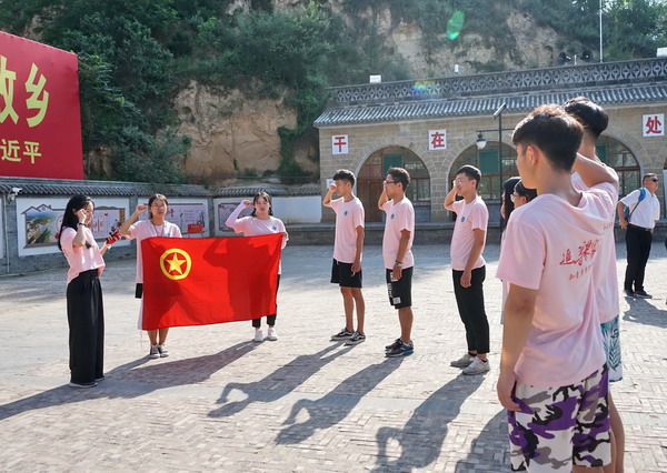 知青井、沼氣池、縫紉店、磨坊、知青舊居,每個地方都讓我們留下了深刻的印象和體驗,現在的很多村民都留在這里繼續延續梁家河精神!繼續把習近平總書記帶領大家致富的道路走下去!在參觀了村史館之后,實踐團全體成員在村委會大院對著團旗,右手握拳,重溫了入團誓詞,當面對團旗宣誓,喊出:“我志愿加入中國共產主義青年團……為共產主義事業而奮斗!”的時候,內心是激動澎湃的,尤其在這樣的地方,如何做好接班人,每個人的心中又有了新的理解!